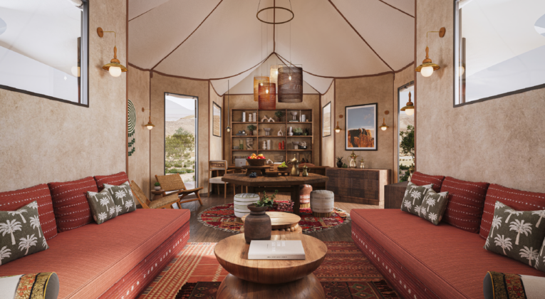 Herzstück sind 50 maßgefertigte Airstreams, die low-impact gestaltet sind und mit lokal beschafften Materialien sowie organischen Textilien ein klares Sense-of-Place erzeugen. Vor den Wagensuiten laden Holzdecks zu stillen Momenten mit Tal- oder Seeblick ein; drinnen setzt eine zurückgenommene Ästhetik auf Haptik, Wärme und Ruhe, ohne die Leichtigkeit eines mobilen Camps zu verlieren.