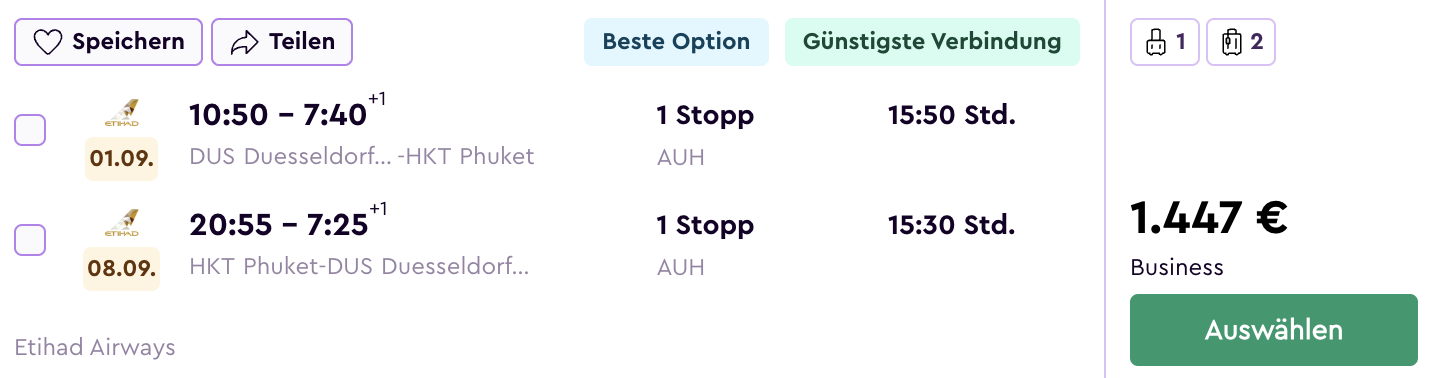 Von Frankfurt, München, Düsseldorf oder Wien aus fliegt ihr zuerst nach Abu Dhabi und dann weiter an das beliebte Urlaubsziel Phuket.