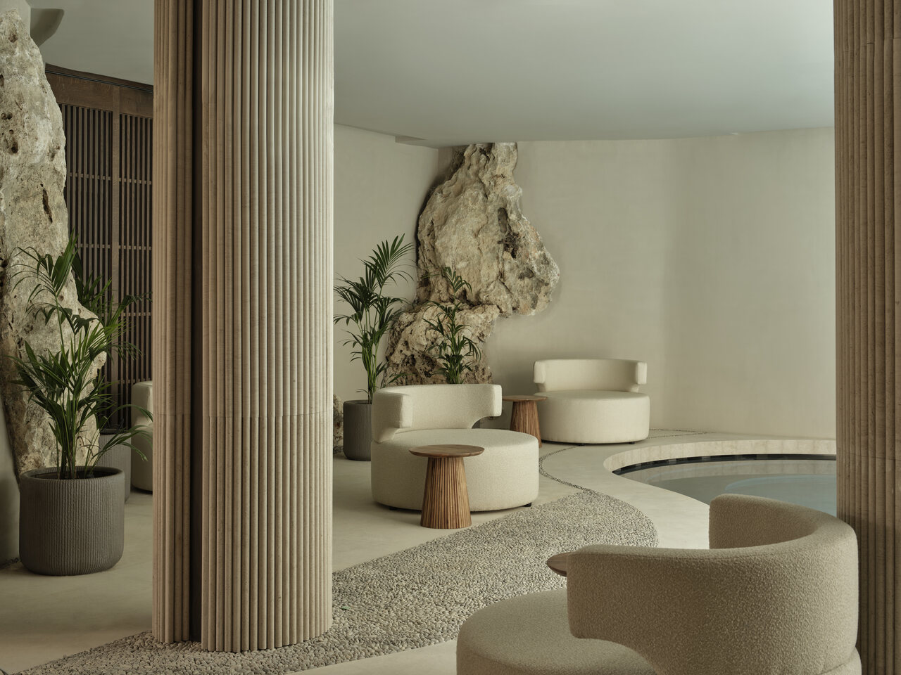 Der großzügige Spa-Bereich ANOSEAS kombiniert lokale Heiltraditionen mit modernen Anwendungen und umfasst unter anderem fünf Behandlungsräume, ein Yoga-Deck sowie mehrere Pools mit Blick aufs Meer.