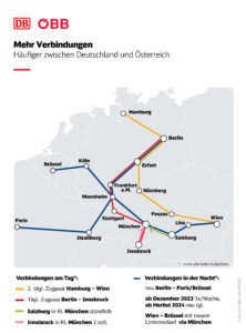 Home News Mehr Verbindungen zwischen Deutschland und Österreich: DB und ÖBB bauen grenzüberschreitenden Verkehr aus 20230905-PI-OeBB-Grafik-3-data 20230905-PI-OeBB-Grafik-3-data 5. September 2023 by Editor Teilen Teilen
