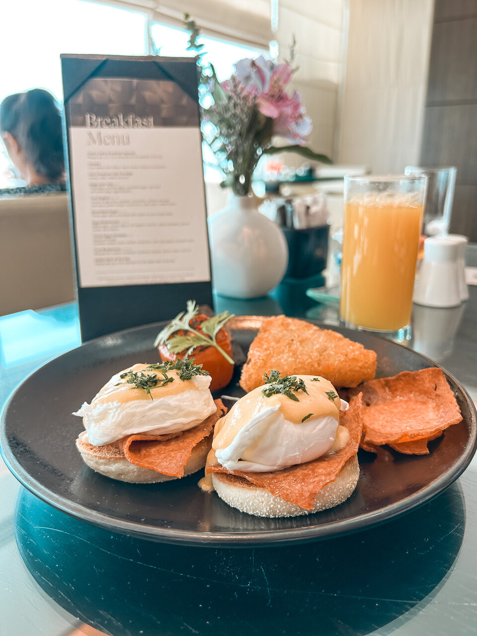 Morgens wird in der Lounge das Frühstück serviert. Neben einem Buffet gibt es auch ein recht umfangreiches A-la-Carte Menü mit frisch zubereiteten Eierspeisen, Pancakes sowie täglich wechselnden Specials. Bereits damit sticht die Club Lounge des Sheraton Grand Hotel Dubai hervor.
