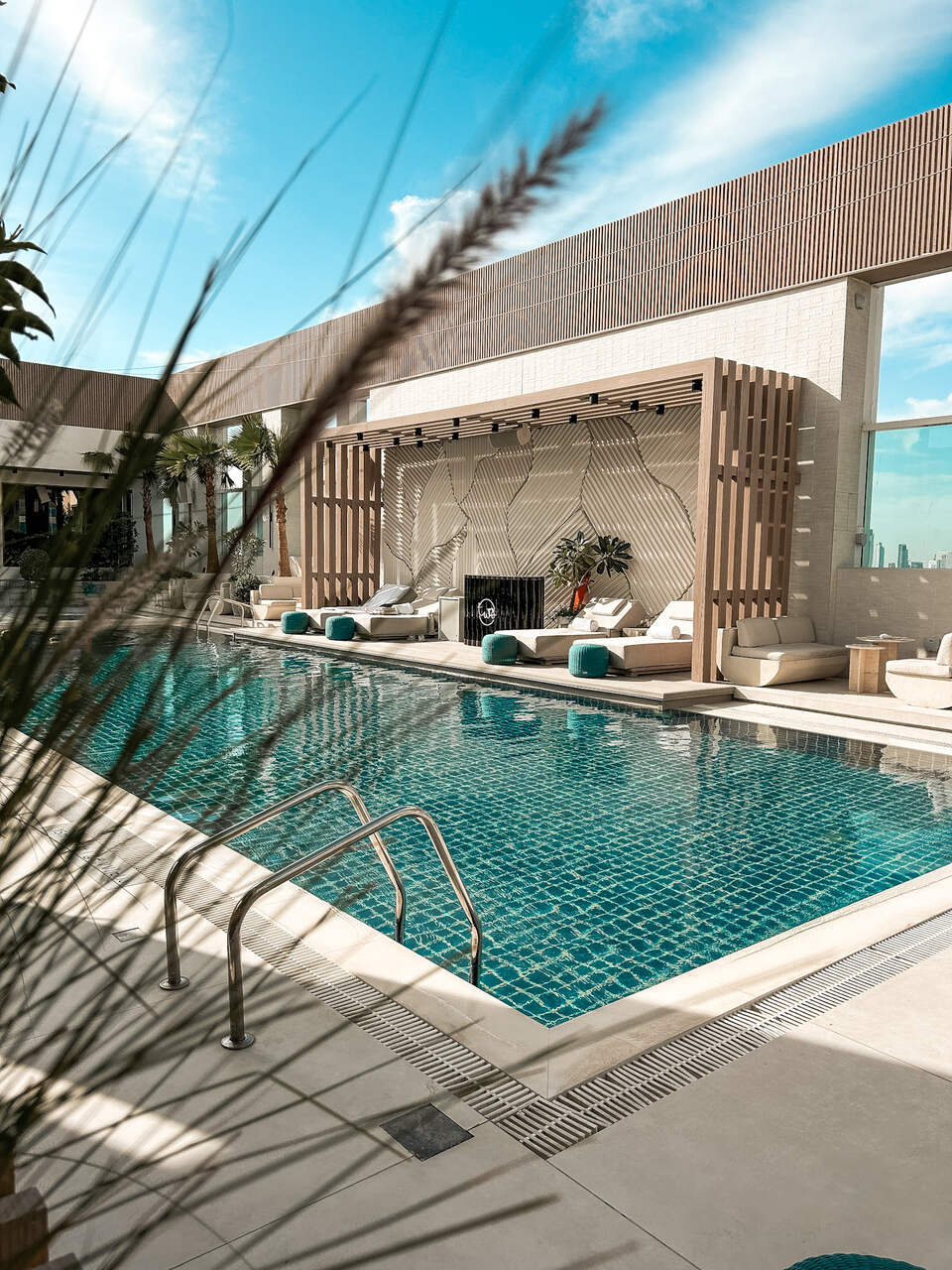 Bequeme Liegen laden zum Verweilen ein, diese sind auch in ausreichender Zahl vorhanden. Der Pool hat eine angenehme Größe, sodass man auch einige Bahnen schwimmen kann. Für die wenigen Wochen im Jahr in denen es in Dubai etwas kühler wird, steht auch ein warmer Whirlpool zur Verfügung.