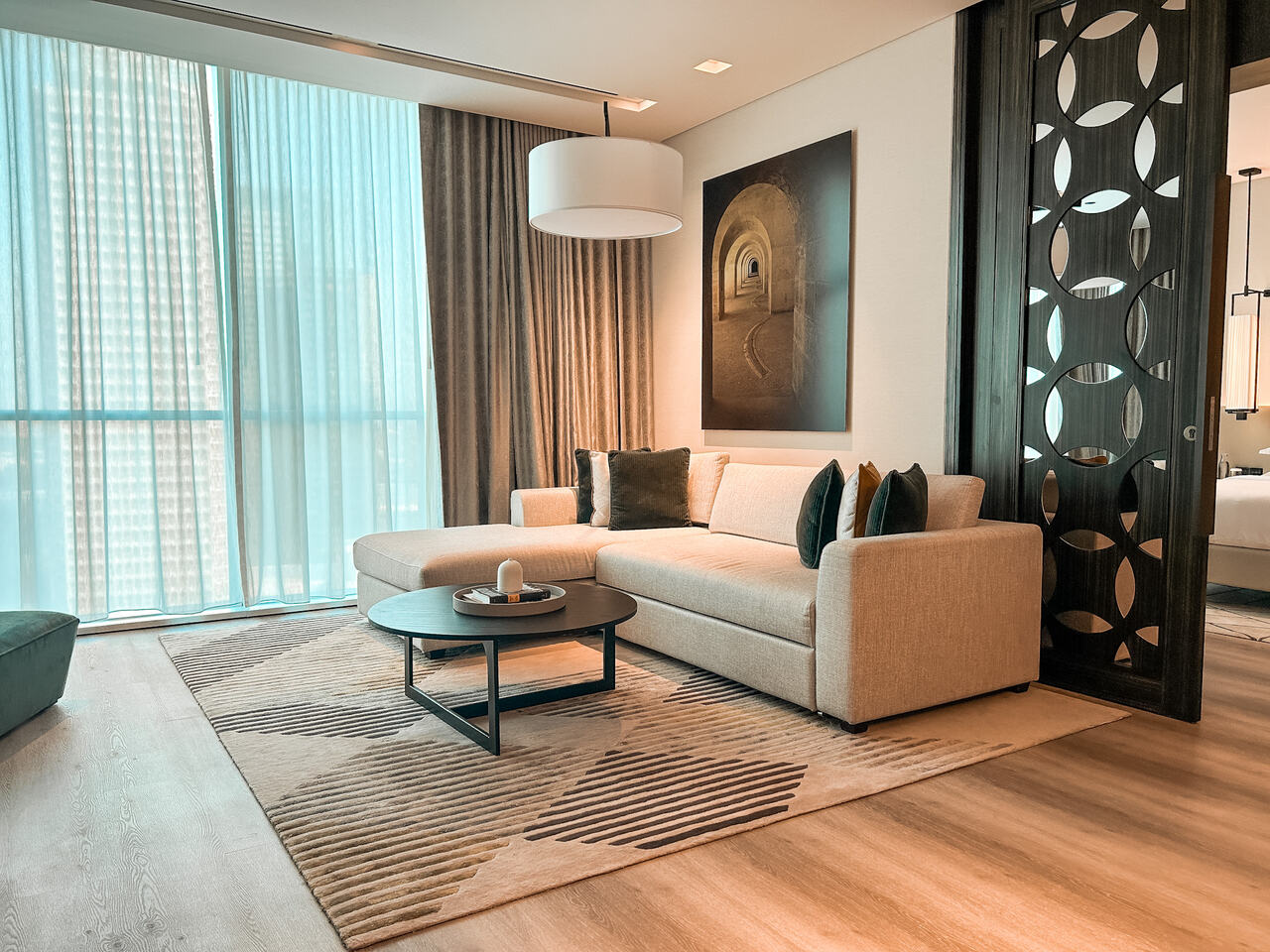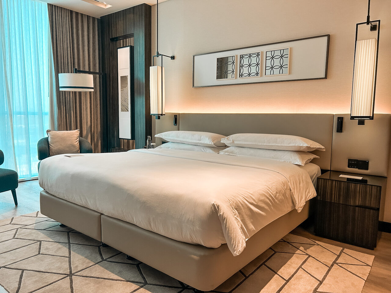 Die bodentiefen Fenster aller Zimmer sorgen für viel Helligkeit und ein angenehmes Raumgefühl. So auch in der Grand Deluxe Suite, die man als Titanium Statuskunde bei Marriott Bonvoy nach Möglichkeit als Upgrade erhält.