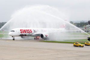 First arrival of the A350-900 HB-IFA at Zurich Airport